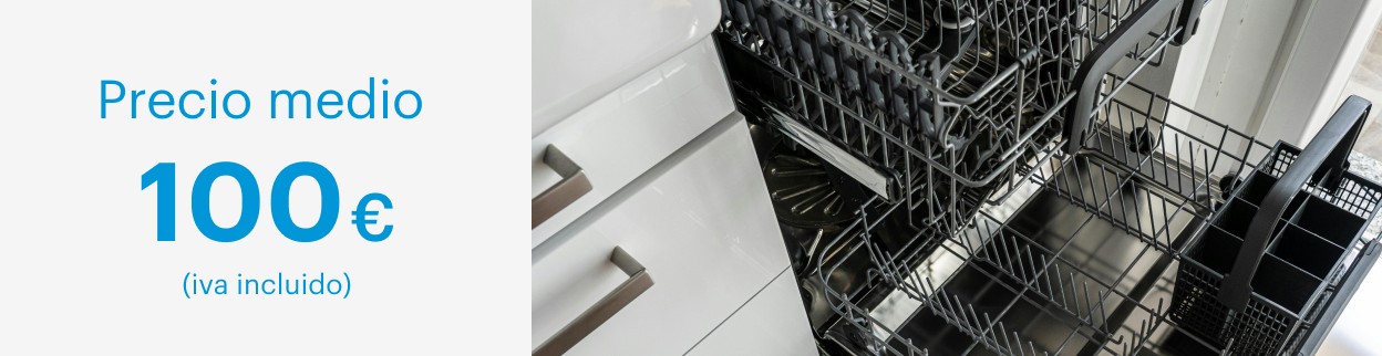El coste medio de la reparación de un lavavajillas es de 100 €. Este valor puede variar entre 49 y 290 € dependiendo del tipo de avería, las piezas concretas que sea necesario sustituir y los gastos extra aplicables, cómo puede ser el desplazamiento a domicilio o la recogida del electrodoméstico.